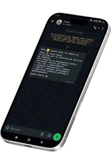 En Fresh Space creemos que la limpieza es más que un servicio: es compromiso, confianza y profesionalismo. Trabajamos con productos industriales profesionales, implementos especializados y maquinaria como vapor de alta presión y aspiradora profesional, garantizando resultados superiores en cada visita. Con más de 3 años de experiencia y el respaldo de un equipo certificado, combinamos técnica, detalle y trato cercano para que tu hogar u oficina luzca impecable, higienizado y lleno de frescura. Nosotros llevamos todo. Tú disfrutas el resultado.